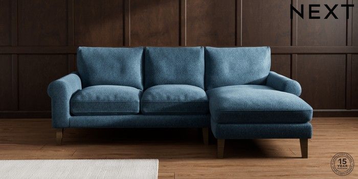 7.0.3 Buy Palermo Relaxed Sit Medium Sofa Chaise - Right Hand Cotswold Chenille Dark Blue Tapered - Mid from the Next UK online shop Click here to use our accessible website