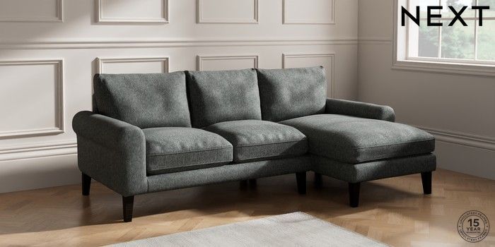 6.12.1 Buy Palermo Relaxed Sit Medium Sofa Chaise - Right Hand Cotswold Chenille Dark Grey Tapered - Dark from the Next UK online shop Click here to use our accessible website
