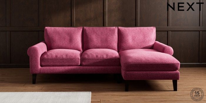 7.0.3 Buy Palermo Relaxed Sit Medium Sofa Chaise - Right Hand Cotswold Chenille Dark Raspberry Pink Tapered - Dark from the Next UK online shop Click here to use our accessible website