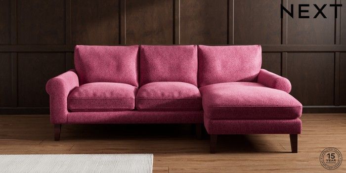 7.0.3 Buy Palermo Relaxed Sit Medium Sofa Chaise - Right Hand Cotswold Chenille Dark Raspberry Pink Tapered - Dark Brown from the Next UK online shop Click here to use our accessible website