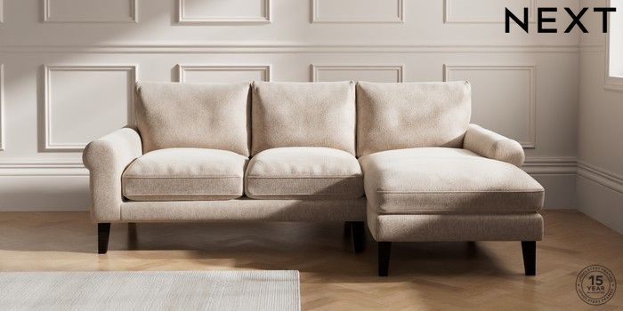 7.0.3 Buy Palermo Relaxed Sit Medium Sofa Chaise - Right Hand Cotswold Chenille Light Natural Tapered - Dark from the Next UK online shop Click here to use our accessible website