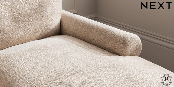 7.0.3 Buy Palermo Relaxed Sit Medium Sofa Chaise - Right Hand Cotswold Chenille Light Natural Tapered - Dark Brown from the Next UK online shop Click here to use our accessible website
