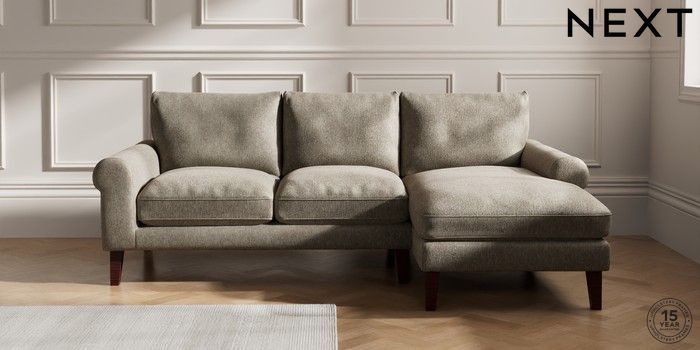 7.0.3 Buy Palermo Relaxed Sit Medium Sofa Chaise - Right Hand Cotswold Chenille Mid Mink Brown Tapered - Dark Brown from the Next UK online shop Click here to use our accessible website