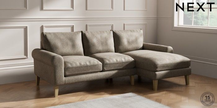 6.12.1 Buy Palermo Relaxed Sit Medium Sofa Chaise - Right Hand Cotswold Chenille Mid Mink Brown Tapered - Light from the Next UK online shop Click here to use our accessible website