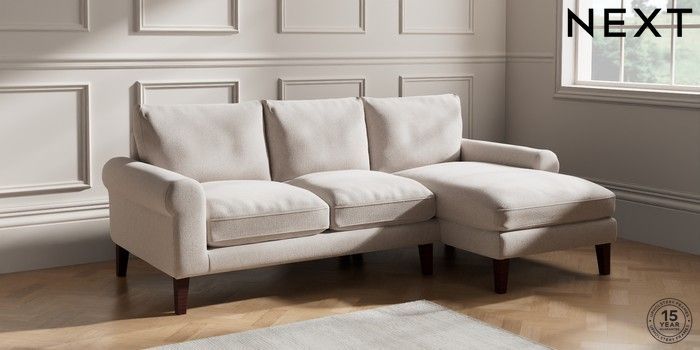 6.12.1 Buy Palermo Relaxed Sit Medium Sofa Chaise - Right Hand Cotswold Chenille Oyster Tapered - Dark Brown from the Next UK online shop Click here to use our accessible website