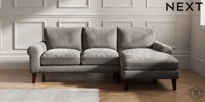 7.0.3 Buy Palermo Relaxed Sit Medium Sofa Chaise - Right Hand Distressed Velour French Grey Tapered - Dark Brown from the Next UK online shop Click here to use our accessible website