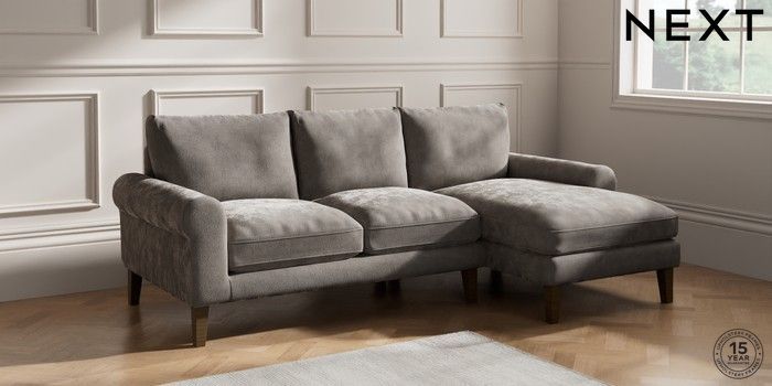6.12.1 Buy Palermo Relaxed Sit Medium Sofa Chaise - Right Hand Distressed Velour French Grey Tapered - Mid from the Next UK online shop Click here to use our accessible website
