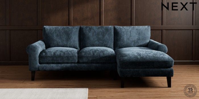 7.0.3 Buy Palermo Relaxed Sit Medium Sofa Chaise - Right Hand Distressed Velour Midnight Blue Tapered - Dark from the Next UK online shop Click here to use our accessible website