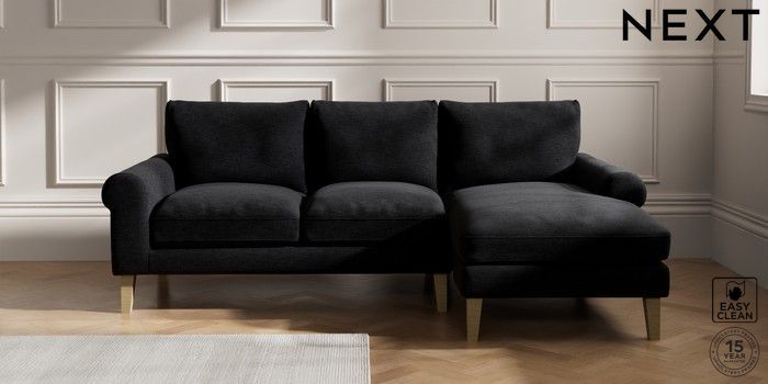 7.0.3 Buy Palermo Relaxed Sit Medium Sofa Chaise - Right Hand Fine Chenille Easy Clean Black Tapered - Light from the Next UK online shop Click here to use our accessible website