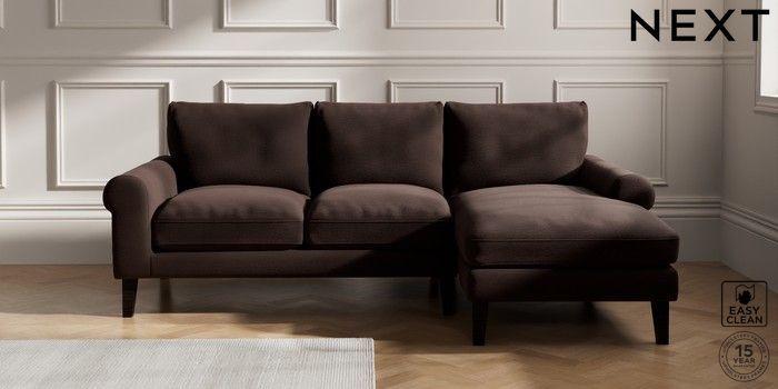 7.0.3 Buy Palermo Relaxed Sit Medium Sofa Chaise - Right Hand Fine Chenille Easy Clean Chocolate Brown Tapered - Dark from the Next UK online shop Click here to use our accessible website