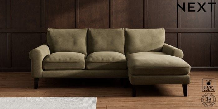 7.0.3 Buy Palermo Relaxed Sit Medium Sofa Chaise - Right Hand Fine Chenille Easy Clean Dark Moss Green Tapered - Dark from the Next UK online shop Click here to use our accessible website