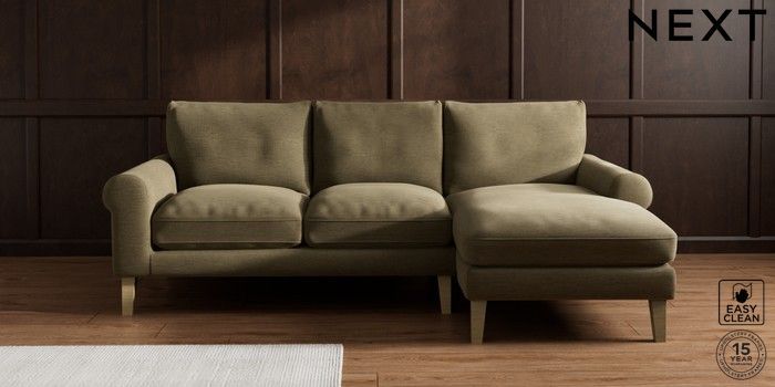 7.0.3 Buy Palermo Relaxed Sit Medium Sofa Chaise - Right Hand Fine Chenille Easy Clean Dark Moss Green Tapered - Light from the Next UK online shop Click here to use our accessible website