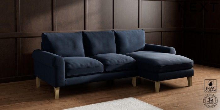 6.12.1 Buy Palermo Relaxed Sit Medium Sofa Chaise - Right Hand Fine Chenille Easy Clean Dark Navy Blue Tapered - Light from the Next UK online shop Click here to use our accessible website