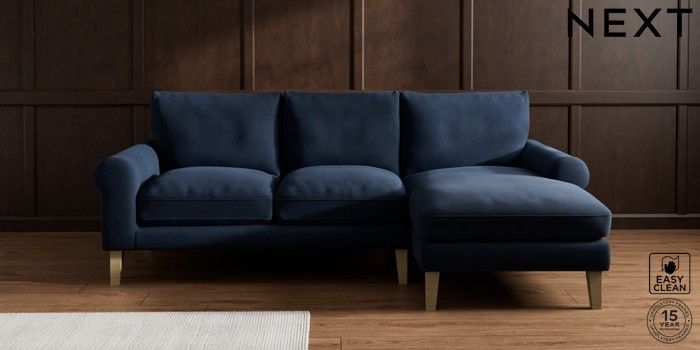 7.0.3 Buy Palermo Relaxed Sit Medium Sofa Chaise - Right Hand Fine Chenille Easy Clean Dark Navy Blue Tapered - Light from the Next UK online shop Click here to use our accessible website