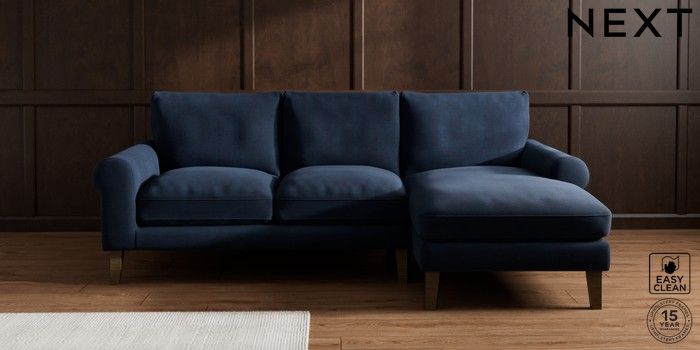 7.0.3 Buy Palermo Relaxed Sit Medium Sofa Chaise - Right Hand Fine Chenille Easy Clean Dark Navy Blue Tapered - Mid from the Next UK online shop Click here to use our accessible website