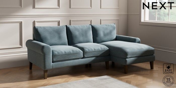 6.12.1 Buy Palermo Relaxed Sit Medium Sofa Chaise - Right Hand Fine Chenille Easy Clean Mid Blue Tapered - Mid from the Next UK online shop Click here to use our accessible website