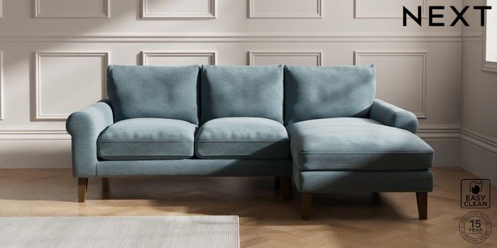 7.0.3 Buy Palermo Relaxed Sit Medium Sofa Chaise - Right Hand Fine Chenille Easy Clean Mid Blue Tapered - Mid from the Next UK online shop Click here to use our accessible website