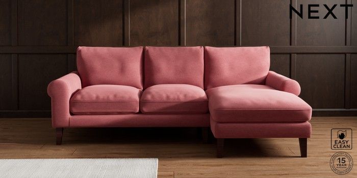 7.0.3 Buy Palermo Relaxed Sit Medium Sofa Chaise - Right Hand Fine Chenille Easy Clean Mid Pink Tapered - Dark Brown from the Next UK online shop Click here to use our accessible website