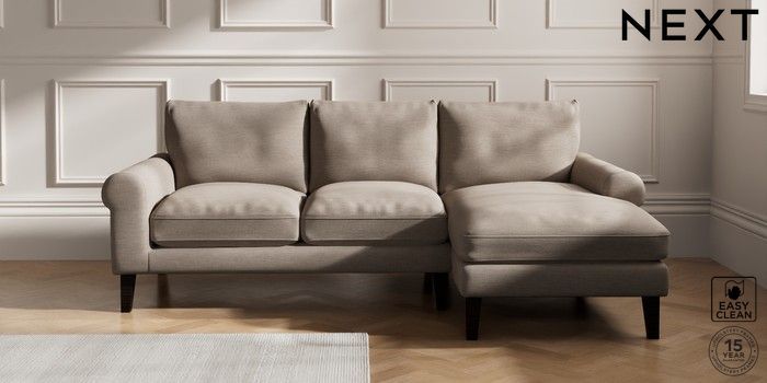 7.0.3 Buy Palermo Relaxed Sit Medium Sofa Chaise - Right Hand Fine Chenille Easy Clean Mid Taupe Brown Tapered - Dark from the Next UK online shop Click here to use our accessible website