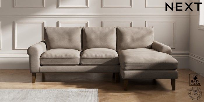 7.0.3 Buy Palermo Relaxed Sit Medium Sofa Chaise - Right Hand Fine Chenille Easy Clean Mid Taupe Brown Tapered - Mid from the Next UK online shop Click here to use our accessible website