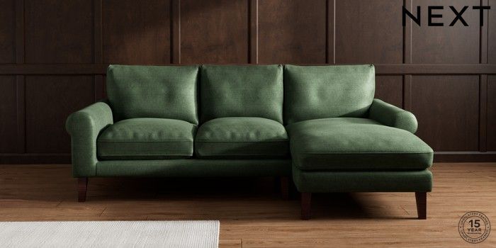 7.0.3 Buy Palermo Relaxed Sit Medium Sofa Chaise - Right Hand Luxe Chenille Dark Green Tapered - Dark Brown from the Next UK online shop Click here to use our accessible website