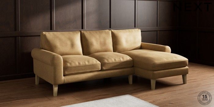6.12.1 Buy Palermo Relaxed Sit Medium Sofa Chaise - Right Hand Luxe Chenille Honey Yellow Tapered - Light from the Next UK online shop Click here to use our accessible website