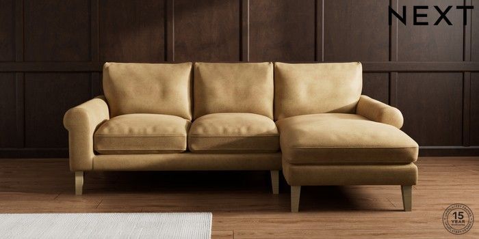 7.0.3 Buy Palermo Relaxed Sit Medium Sofa Chaise - Right Hand Luxe Chenille Honey Yellow Tapered - Light from the Next UK online shop Click here to use our accessible website