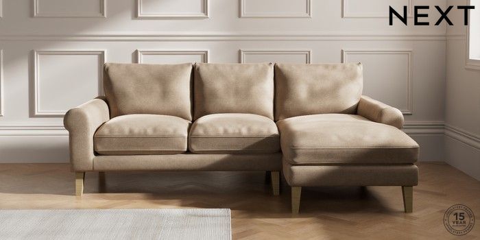 7.0.3 Buy Palermo Relaxed Sit Medium Sofa Chaise - Right Hand Luxe Chenille Mid Camel Beige Tapered - Light from the Next UK online shop Click here to use our accessible website