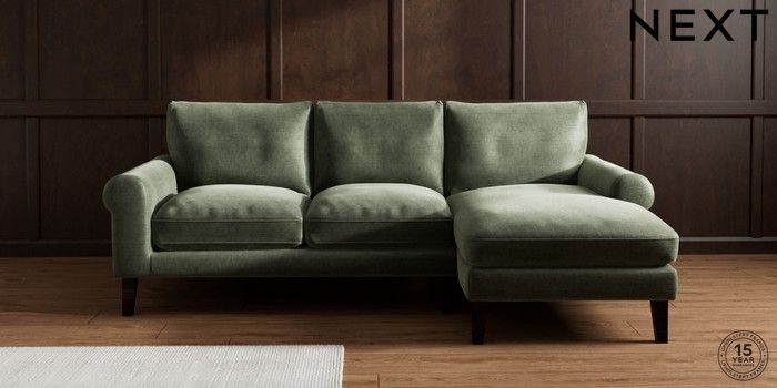 7.0.3 Buy Palermo Relaxed Sit Medium Sofa Chaise - Right Hand Luxe Chenille Mid Green Tapered - Dark from the Next UK online shop Click here to use our accessible website
