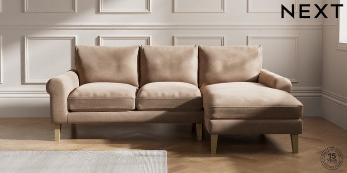 7.0.3 Buy Palermo Relaxed Sit Medium Sofa Chaise - Right Hand Luxe Chenille Mid Natural Tapered - Light from the Next UK online shop Click here to use our accessible website