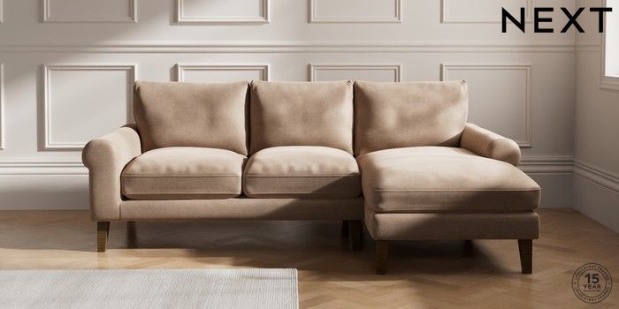 7.0.3 Buy Palermo Relaxed Sit Medium Sofa Chaise - Right Hand Luxe Chenille Mid Natural Tapered - Mid from the Next UK online shop Click here to use our accessible website