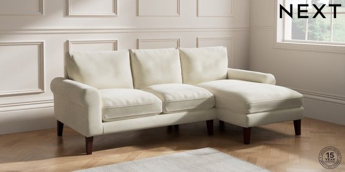 7.0.3 Buy Palermo Relaxed Sit Medium Sofa Chaise - Right Hand Luxe Chenille Oyster Tapered - Dark Brown from the Next UK online shop Click here to use our accessible website