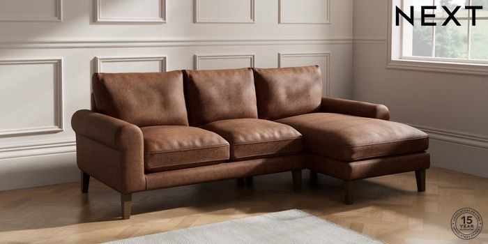 6.12.1 Buy Palermo Relaxed Sit Medium Sofa Chaise - Right Hand Monza Faux Leather Easy Clean Chestnut Brown Tapered - Mid from the Next UK online shop Click here to use our accessible website