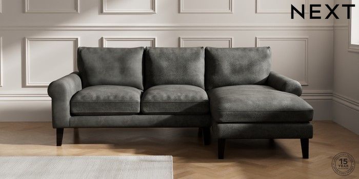7.0.3 Buy Palermo Relaxed Sit Medium Sofa Chaise - Right Hand Monza Faux Leather Easy Clean Dark Grey Tapered - Dark from the Next UK online shop Click here to use our accessible website