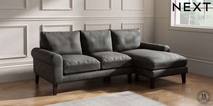 6.12.1 Buy Palermo Relaxed Sit Medium Sofa Chaise - Right Hand Monza Faux Leather Easy Clean Dark Grey Tapered - Dark Brown from the Next UK online shop Click here to use our accessible website