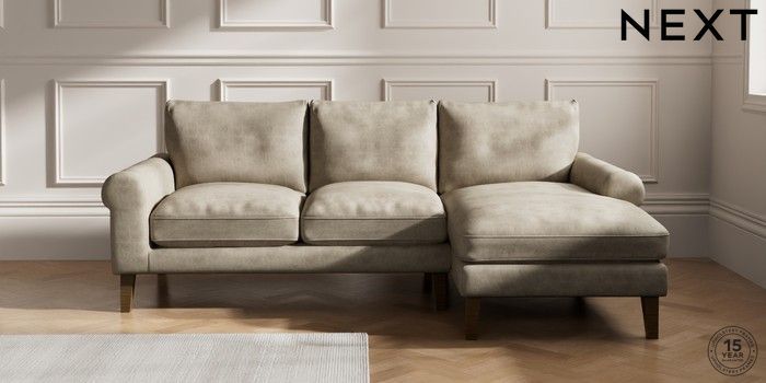 7.0.3 Buy Palermo Relaxed Sit Medium Sofa Chaise - Right Hand Monza Faux Leather Easy Clean Mink Brown Tapered - Mid from the Next UK online shop Click here to use our accessible website