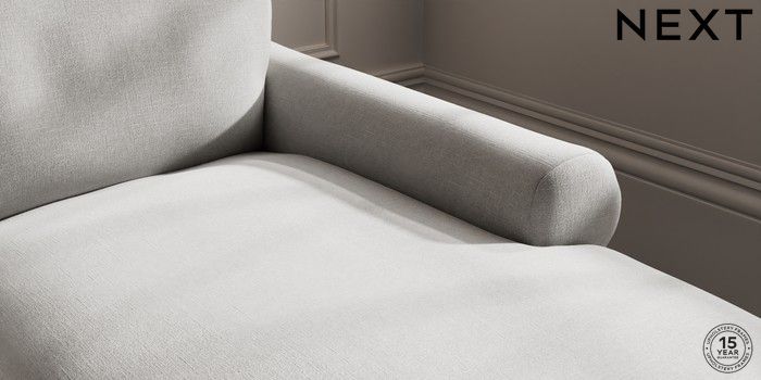 7.0.3 Buy Palermo Relaxed Sit Medium Sofa Chaise - Right Hand Natural Mix Light Grey Tapered - Light from the Next UK online shop Click here to use our accessible website