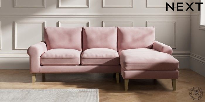7.0.3 Buy Palermo Relaxed Sit Medium Sofa Chaise - Right Hand Natural Mix Light Rose Pink Tapered - Light from the Next UK online shop Click here to use our accessible website