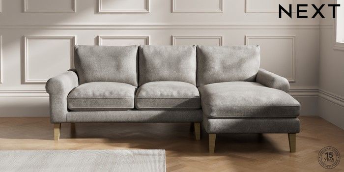 7.0.3 Buy Palermo Relaxed Sit Medium Sofa Chaise - Right Hand Plush Chenille Light Grey Tapered - Light from the Next UK online shop Click here to use our accessible website