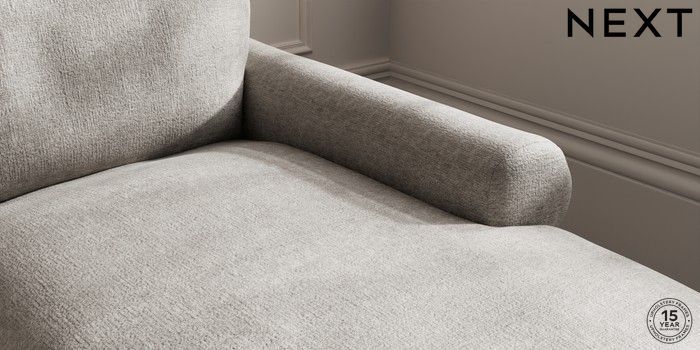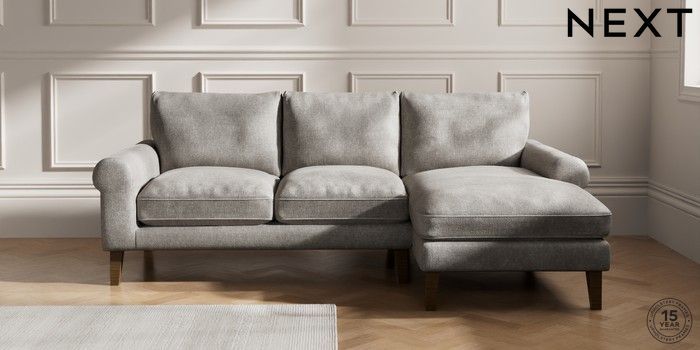 7.0.3 Buy Palermo Relaxed Sit Medium Sofa Chaise - Right Hand Plush Chenille Light Grey Tapered - Mid from the Next UK online shop Click here to use our accessible website