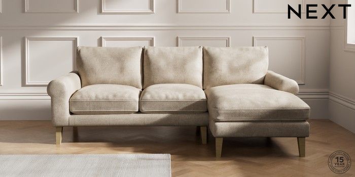7.0.3 Buy Palermo Relaxed Sit Medium Sofa Chaise - Right Hand Plush Chenille Light Natural Tapered - Light from the Next UK online shop Click here to use our accessible website