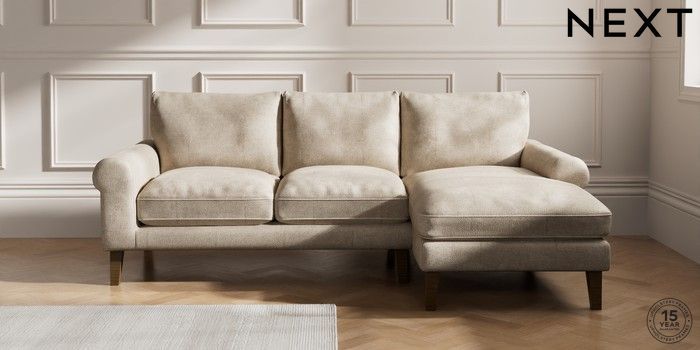 7.0.3 Buy Palermo Relaxed Sit Medium Sofa Chaise - Right Hand Plush Chenille Light Natural Tapered - Mid from the Next UK online shop Click here to use our accessible website