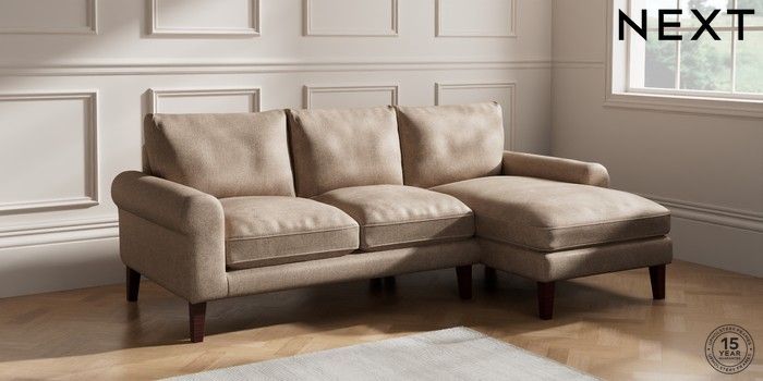 6.12.1 Buy Palermo Relaxed Sit Medium Sofa Chaise - Right Hand Plush Chenille Mid Natural Tapered - Dark Brown from the Next UK online shop Click here to use our accessible website