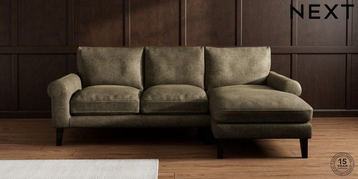 7.0.3 Buy Palermo Relaxed Sit Medium Sofa Chaise - Right Hand Plush Chenille Moss Green Tapered - Dark from the Next UK online shop Click here to use our accessible website
