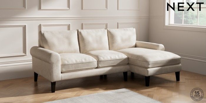 6.12.1 Buy Palermo Relaxed Sit Medium Sofa Chaise - Right Hand Plush Chenille Oyster Tapered - Dark from the Next UK online shop Click here to use our accessible website