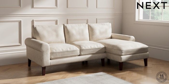 6.12.1 Buy Palermo Relaxed Sit Medium Sofa Chaise - Right Hand Plush Chenille Oyster Tapered - Dark Brown from the Next UK online shop Click here to use our accessible website