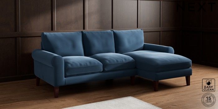 6.12.1 Buy Palermo Relaxed Sit Medium Sofa Chaise - Right Hand Plush Velvet Easy Clean Airforce Blue Tapered - Dark Brown from the Next UK online shop Click here to use our accessible website