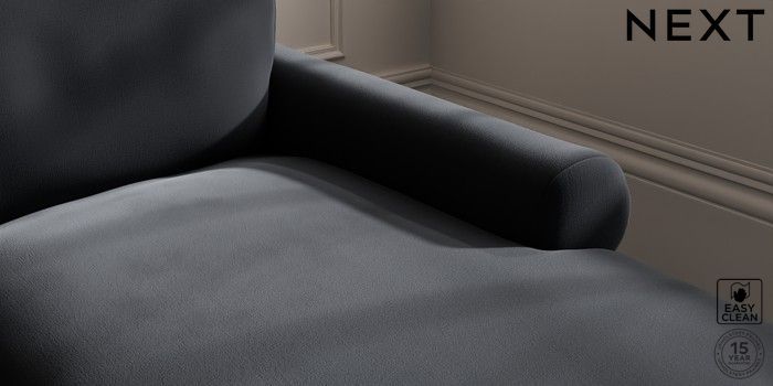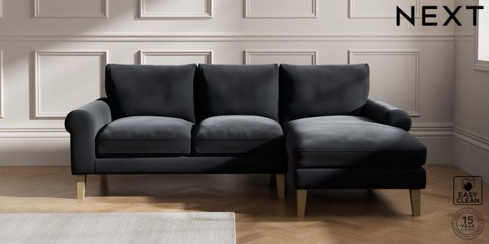 7.0.3 Buy Palermo Relaxed Sit Medium Sofa Chaise - Right Hand Plush Velvet Easy Clean Charcoal Grey Tapered - Light from the Next UK online shop Click here to use our accessible website