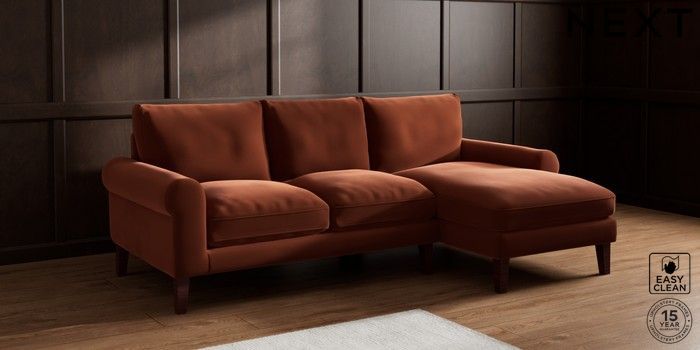 6.12.1 Buy Palermo Relaxed Sit Medium Sofa Chaise - Right Hand Plush Velvet Easy Clean Ginger Orange Tapered - Dark Brown from the Next UK online shop Click here to use our accessible website