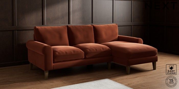 6.12.1 Buy Palermo Relaxed Sit Medium Sofa Chaise - Right Hand Plush Velvet Easy Clean Ginger Orange Tapered - Mid from the Next UK online shop Click here to use our accessible website